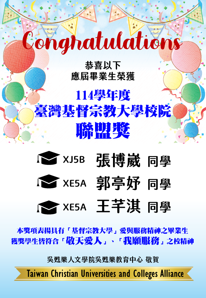 【114學年度台灣基督宗教大學校院聯盟獎】得獎名單